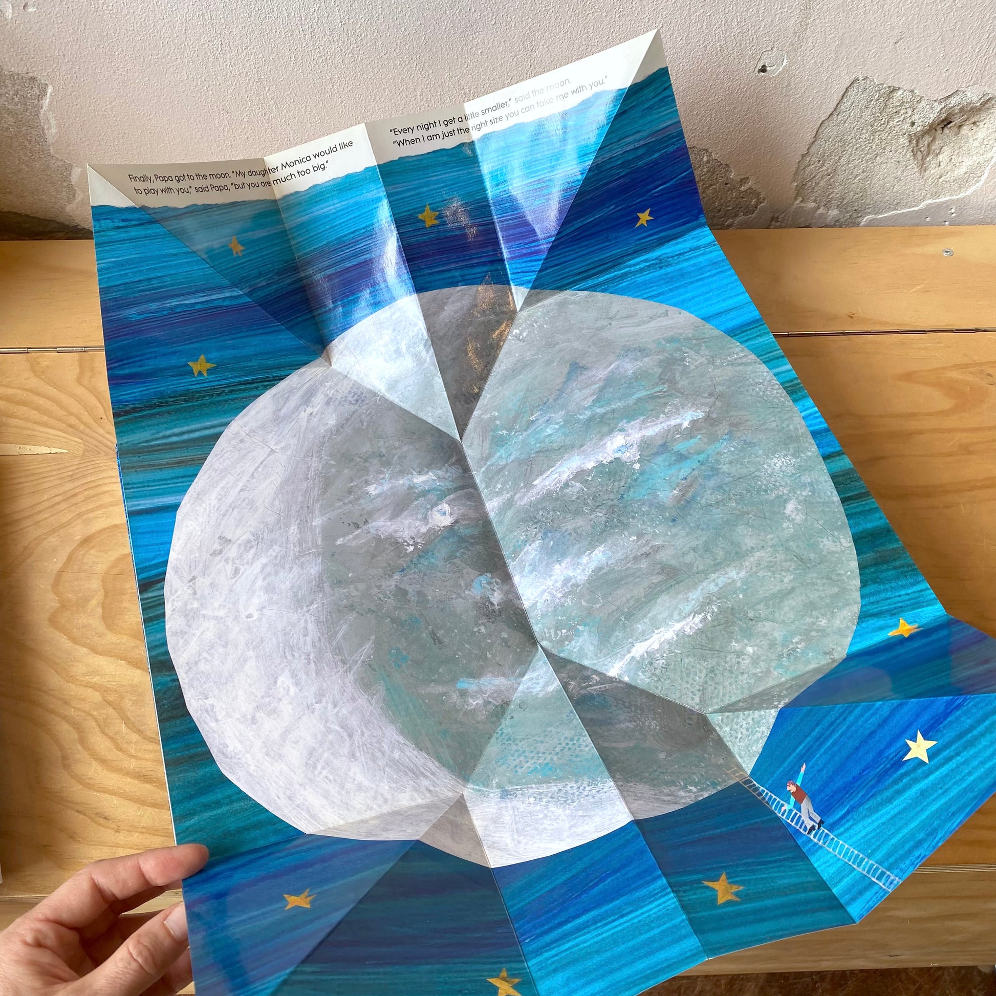 Monica wants to play with the moon, but she can’t quite seem to reach it. This story literally unfolds as the pages extend both outward and upward, and readers will empathize with Monica’s longing for the moon as well as be reassured by her father’s willingness to try to make her dream come true. Children and adults alike will enjoy this beloved tale about a father’s love!